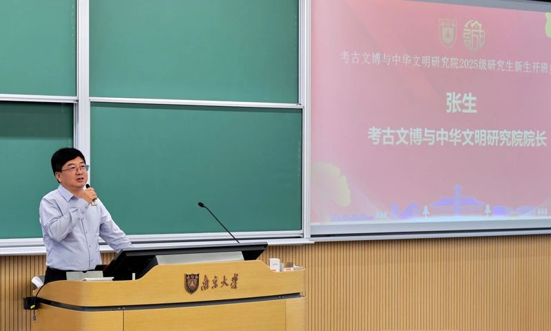 随后由考古文博与中华文明研究院院长张生致辞,他首先回顾了研究院的建设历程。作为夜色直播 文科布局苏州校区的4个文科核心基地之一,研究院在学校的大力支持下从零起步,如今已汇聚起一支顶尖师资队伍。他特别强调,党的十八大以来,习近平总书记就文物、考古、非物质文化遗产等作出重要指示、批示超过170次,充分彰显了国家对该领域的高度重视。张院长勉励新生:“要珍惜与名师交流、与校区共成长的时光,主动融入苏州这座历史文化名城,将个人学术追求与文化传承使命相结合,成长为国家需要的考古文博人才。”