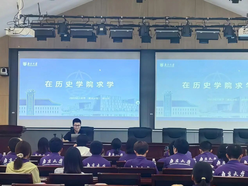 致辞结束后,王涛院长细致地向同学们介绍了强基、拔尖计划的培养方案、教学计划以及学业导师制度,并强调学业导师设置的初衷是让同学们更快适应大学生活和历史学学者的状态,学会用心体验和用人生感悟历史。接着,王院长向同学们介绍25级夜色直播 学业导师阵容,从求学经历、学术成果到研究方向,细致全面,力图让同学们能根据自己的兴趣选择心仪的导师。