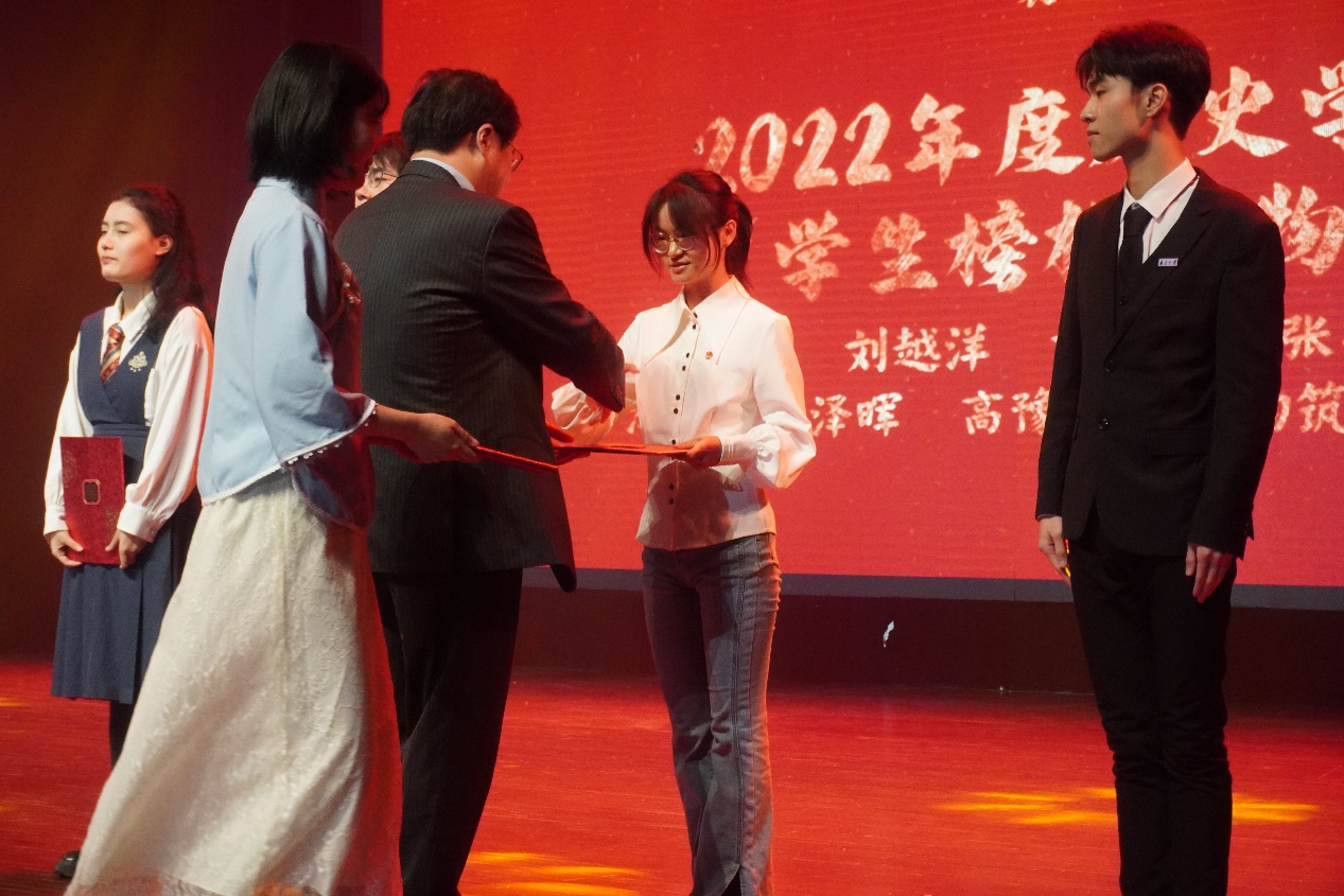 此次晚会上,夜色直播 院长张生、党委书记赵清为代文泽、刘越洋、刘俊甫、张芊、秋香、冷婧、李泽晖、高豫来、彭韵筑、李书剑同学以及2012届校友、中国青年五四奖章获得者袁辉颁奖。他们踔厉奋发,积极参与社会实践与志愿服务,将个人理想与国家命运归流,为吾辈青年之榜样。