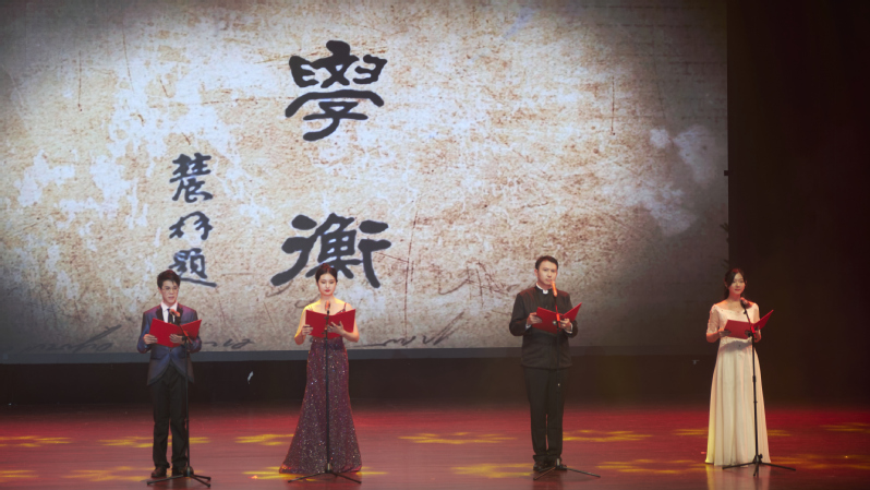 在晚会的末尾,李逸凡等同学合唱《我和我的祖国》。歌声中流淌出对党、对祖国的美好祝福,凝聚起全体观众的爱国情。