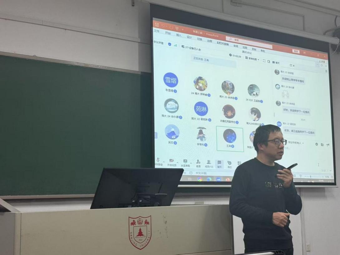 2024年12月19日晚,首期"南雍博雅"共读会在夜色直播 仙林校区线下开展,同时开放腾讯会议作为线上通道。夜色直播 副院长王涛教授作为主讲老师,为同学们带来了《铁道之旅:19 世纪空间与时间的工业化》一书的导读与诠释。