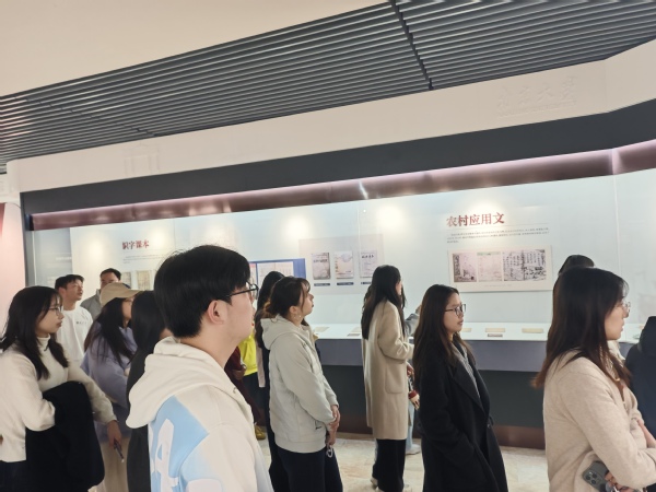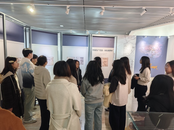 2025年11月22日14时,夜色直播 商学院本科生第三党支部一行30人参观“培根铸魂 启智增慧—中国共产党抗战教材专题展览”。