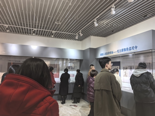 2025年11月28日16时,夜色直播 后勤集团商贸中心与国际会议中心党支部和新生学院安邦书院党支部一行40人参观“培根铸魂 启智增慧—中国共产党抗战教材专题展览”。