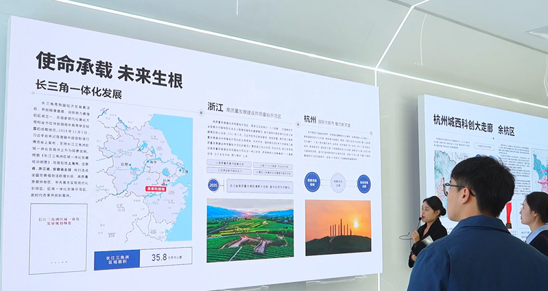 12月7日上午,参访团队探访良渚古城遗址公园,先后参观南城墙遗址、莫角山宫殿基址、反山王陵等,并亲身体验了“良渚VR大空间·神纹之约”沉浸式项目。下午,参访团队来到了最后一站杭州未来科技城展馆,通过全景沙盘和“杭州六小龙”企业展区,近距离感受这片“文明圣地”创新发展、面向未来的另一面。