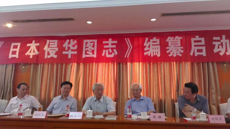 《日本侵华图志》(25卷)选用图片2万余幅,真实反映日本侵华罪行。(张宪文为左三)