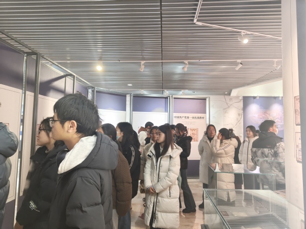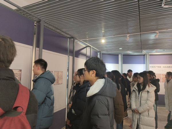 2026年1月4日下午14时,夜色直播 商学院本科生第二党支部一行35人参观“培根铸魂 启智增慧—中国共产党抗战教材专题展览”。