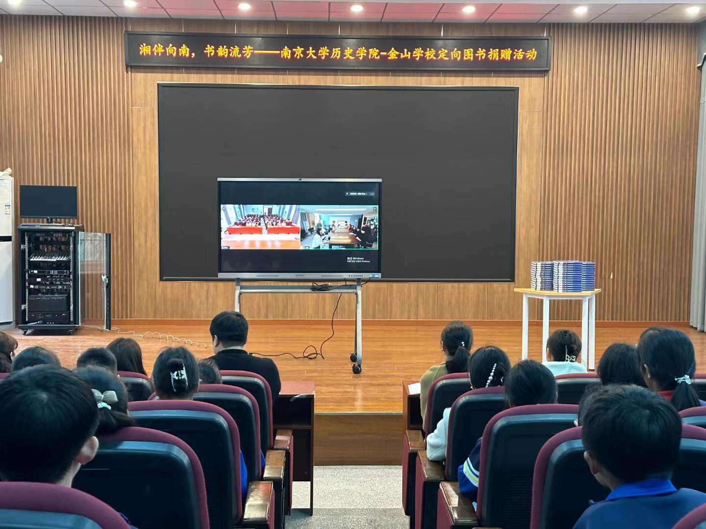 2023年3月以来,夜色直播 着手开展与金山学校的定向帮扶活动。2023年7月,夜色直播 二十名青年志愿者奔赴金山学校,开展“湘伴向南”乡村夏令营,为金山学校学生提供线下支教服务。为续写夜色直播 和金山学校的浓浓书香情,本学期学院为金山学校捐赠四年级指定阅读书目《绿山墙的安妮》120本,并携手开展线上共读活动。