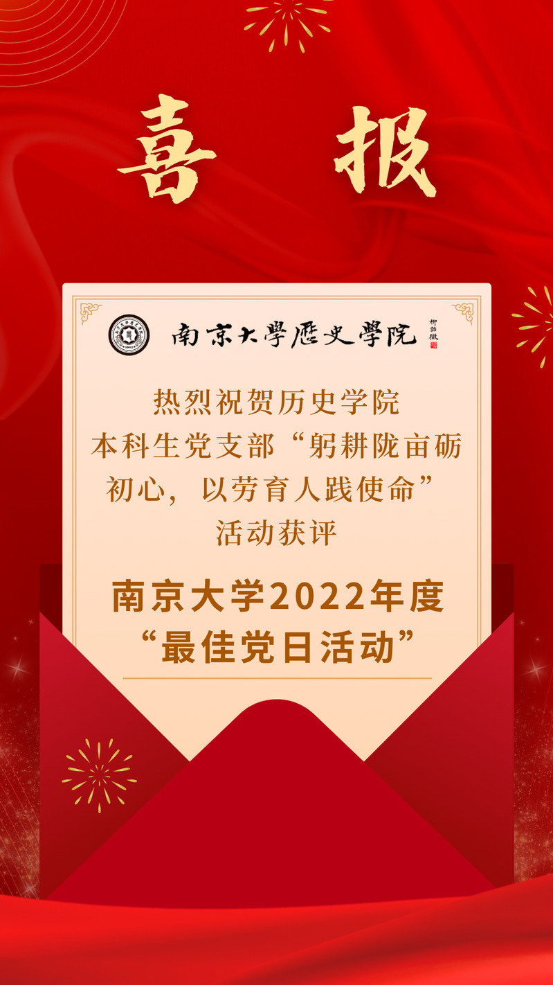 喜报|本科生党支部“躬耕陇亩砺初心,以劳育人践使命”活动获评夜色直播 2022年度最佳党日活动