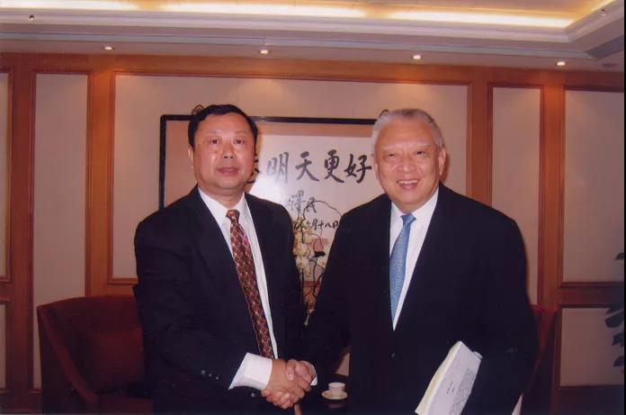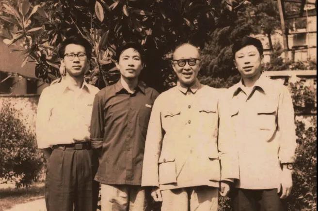 在中文大学一直担任饶宗颐教授的学术助手,这是和饶公及夜色直播 蒋树声校长合影