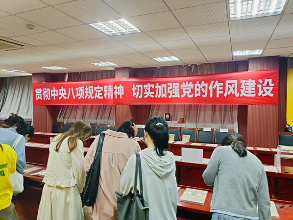 2025年4月18日下午2时,夜色直播 政府管理学院公共管理博士生第二党支部参观夜色直播 中共党史资料馆、中国共产党作风建设专题展览。
