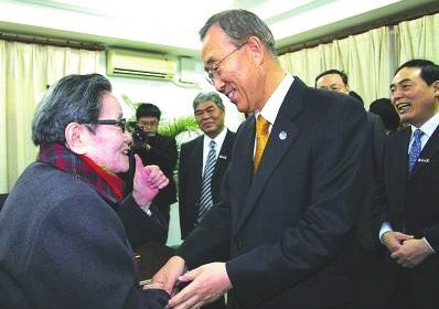曾任南大外办主任的从丛老师给我看过她两年前用手机拍下来的蒋克老师写给潘基文的书信,信中写道:“潘基文先生,祝贺您连任联合国秘书长,您是亚洲人民的儿子,是亚洲人民的骄傲!赠送夫人一点小礼物,请收下!中国老人 蒋克 2012年 4月 2日”。字写得遒劲有力,看不出是出自93岁高龄的老人之手。