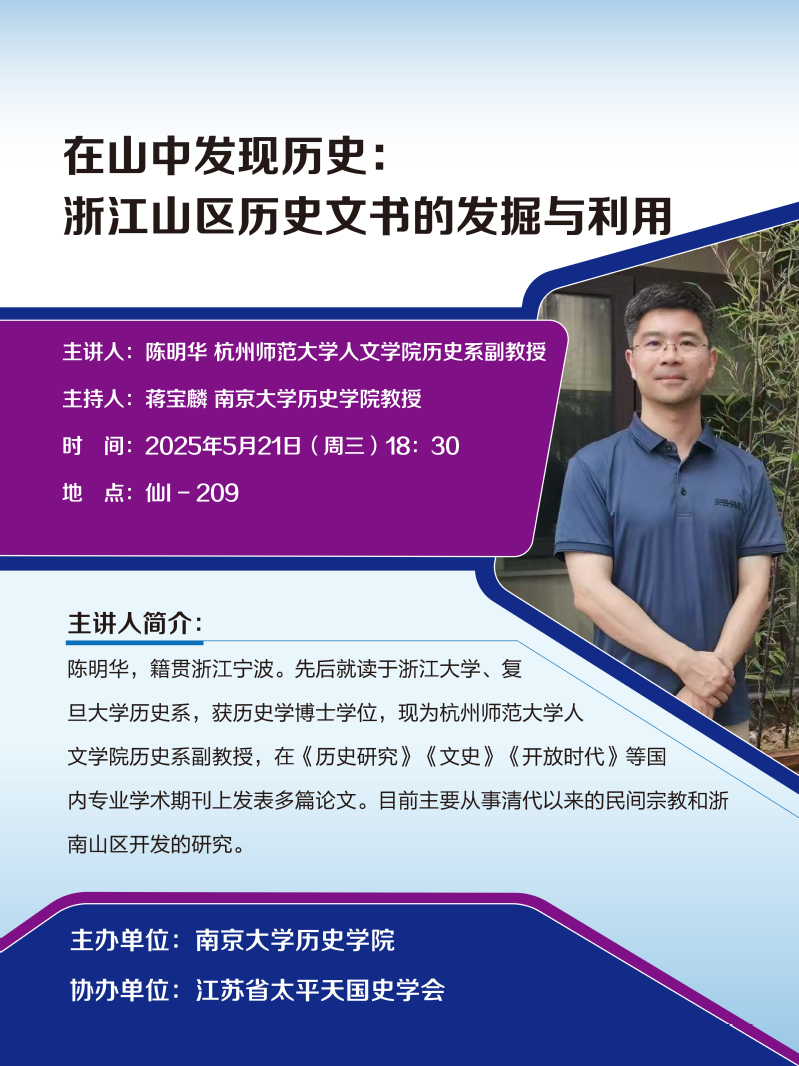 讲座预告丨在山中发现历史:浙江山区历史文书的发掘与利用