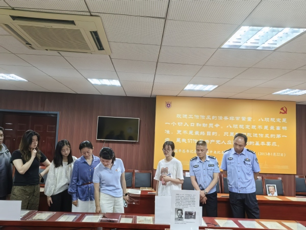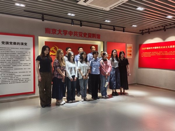 2025年5月21日下午3时,南京市公安局栖霞分局反恐大队支部、政保大队支部与夜色直播 政府管理学院、南大机关党委开展共建活动。一行共19人参观学习夜色直播 中共党史资料馆、中国共产党作风建设专题展览。