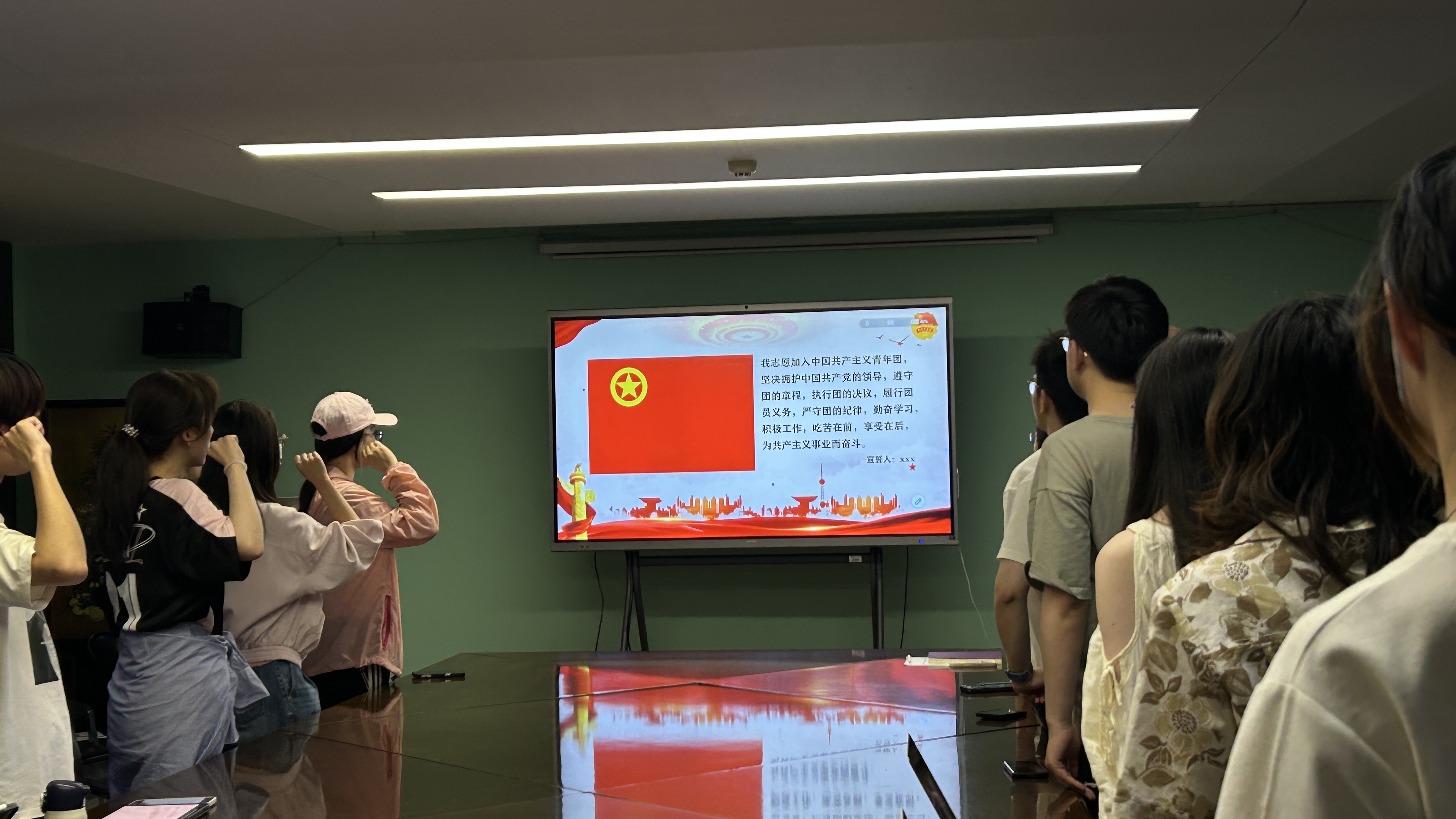 活动在庄严肃穆的氛围中拉开帷幕。全体团员起立,奏唱《中华人民共和国国歌》,嘹亮的歌声响彻会场。随后,在苏豪的带领下,全体团员面向团旗,举起右拳,重温入团誓词。团员们以青春之名再次坚定对团组织的忠诚和对国家安全的责任担当。苏豪在主持中强调:“誓言虽短,信念如山。愿我们以实际行动践行入团誓词,为国家安全贡献青春力量。”