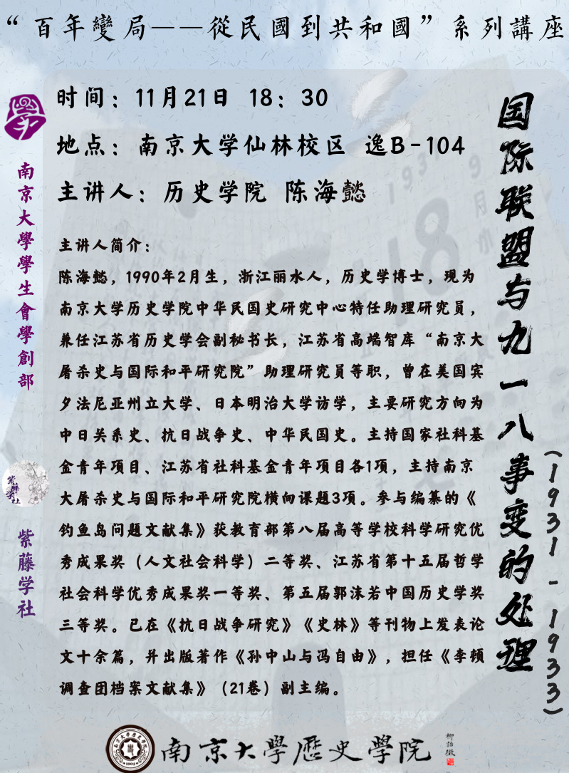 欢迎感兴趣的同学参加,更多“百年变局——从民国到共和国”系列讲座敬请期待。