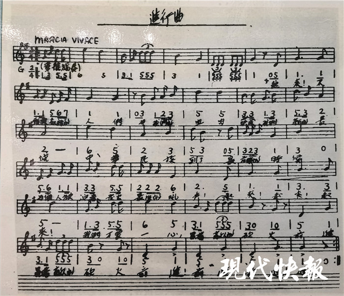 从歌词上看,《义勇军进行曲》只有83个字,春秋笔法,言简意赅。开篇是激励人心的号召,“起来,不愿做奴隶的人们。把我们的血肉筑成我们新的长城”,血肉筑成新的长城,用生动形象的比喻,表示决心之坚定、意志之顽强。然后是触及心灵的警醒,“中华民族到了最危险的时候,每个人被迫着发出最后的吼声。”最危险的时候,最后的吼声。两个最后让人感到万分的紧迫。接着,连续三个“起来”,发出战斗的呼唤,吹响进军的号角。2016年,习近平总书记在庆祝中国共产党成立95周年的重要讲话中指出,我们党团结带领中国人民进行改革开放新的伟大革命,“实现了中国人民从站起来到富起来、强起来的伟大飞跃”。这三个“起来”,可以说既是历史的巧合,又是历史的必然。最后,“我们万众一心,冒着敌人的炮火,前进,冒着敌人的炮火,前进,前进,前进,进!”生动展现了中华儿女在抵抗外来侵略的浴血战斗中的不怕牺牲、奋战到底的民族精神。“前进”连续三次,我们仿佛看到炮火纷飞的战场上华夏儿女义无反顾地冲锋陷阵。聂耳在谱曲时,对原词作了些细微的修改。原来是“冒着敌人的飞机大炮”,改为“冒着敌人的炮火”,修改后更准确,也更简洁上口;另外,原来是“前进,前进,前进”,聂耳在最后加一个“进”字。更加铿锵有力、意味深长。