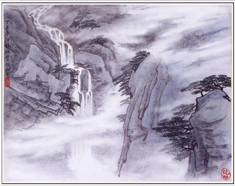 杨休教授所作的《流云飞瀑图》