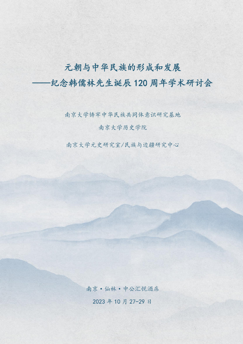 元史研究室/民族与边疆研究中心将于2023年10月27-29日在中公汇悦酒店举办“元朝与中华民族的形成和发展——纪念韩儒林先生诞辰120周年学术研讨会”。