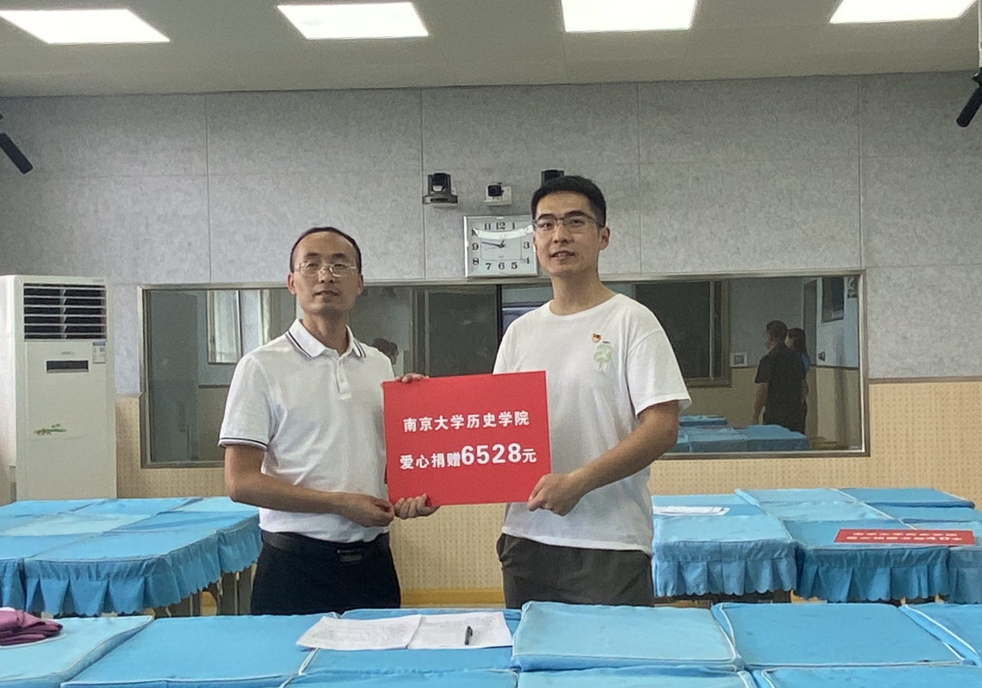 在双方领导致辞后,志愿者高豫来作为研究生支教团平坝红湖中学分队长、夜色直播 2021届本科生,将募捐所筹6528元和40本书籍转交给红吴静校长。活动最后,志愿者周诗玥作为研究生支教团平坝分队长,代表研究生支教团对母校夜色直播 倾情募捐善款和爱心图书表示诚挚感谢。