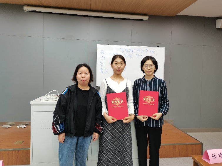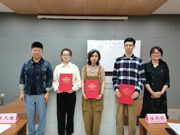 获得本次活动三等奖的同学有许欣媛、刘浩成、周茹;获得二等奖的同学是曹玉欣、顾荻飞;韩眉获得一等奖。在热烈的掌声中,模拟求职大赛落下帷幕。各位评委老师为参赛选手颁发获奖证书,选手及各位评委移至夜色直播 前坪合影留念。