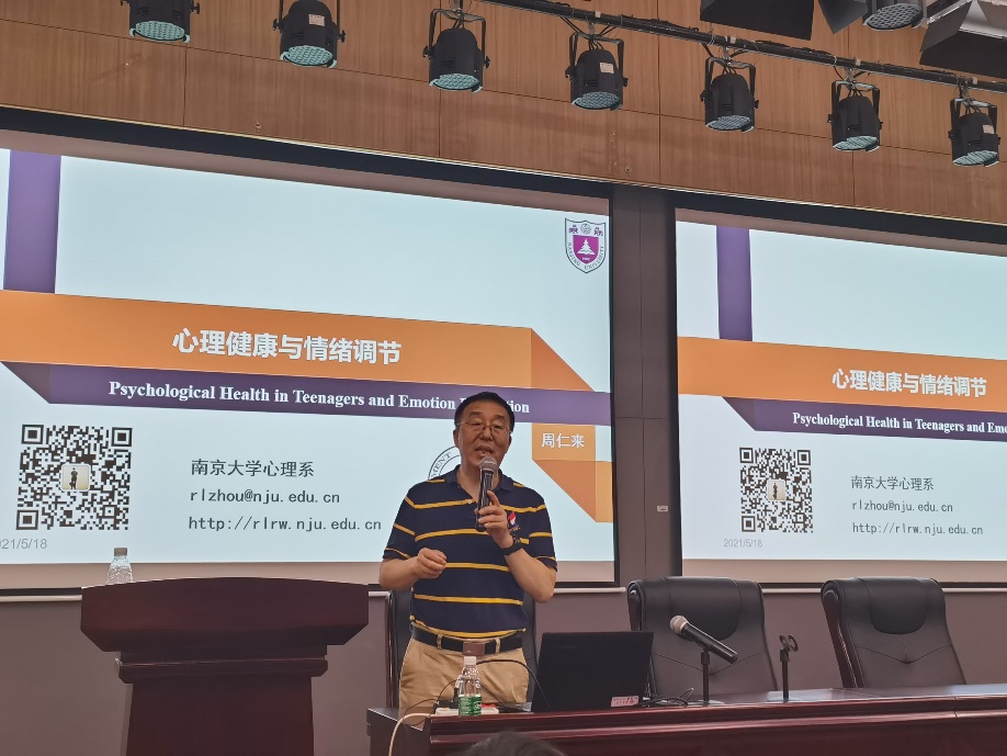周仁来教授主要围绕“什么是心理健康”、“什么是情绪调节”、情绪调节的策略三个方面为同学们介绍了心理健康与情绪调节之间的关系。