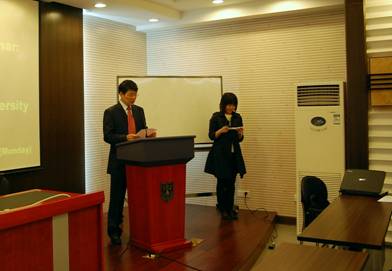 洪邮生教授发表演讲 洪邮生教授从国际关系的角度提出这样的问题:怎样去定义欧盟的力量?欧盟会怎样使用这种力量?从欧盟与外部世界的关系来看,这是难以把握的。希望《里斯本条约》的生效,能够给欧盟的发展带来新的希望,使其充当一个和平的角色在国际上发挥应有的影响力。