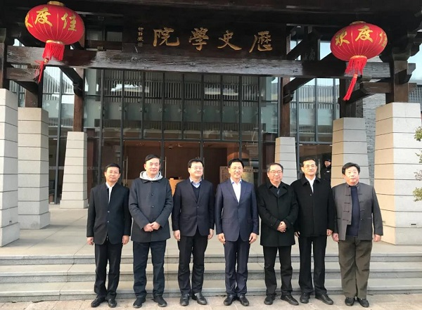 Together with CPC secretary Hui Xin'an on the visit to Nanjing University were Li Lanxiang, a member of Weifang’s CPC standing committee and secretary-general, Lyu Yaoliang, Weifang municipal CPC committee’s deputy secretary-general and director of the political research office, Xin Lianguo, Weifang municipal CPC committee’s deputy secretary-general and director of the Reception Center, Zhao Wenguo, deputy director of Weifang Investment Cooperation Promotion Bureau, and Ji Shuchun, director of Weifang Museum and research fellow.
